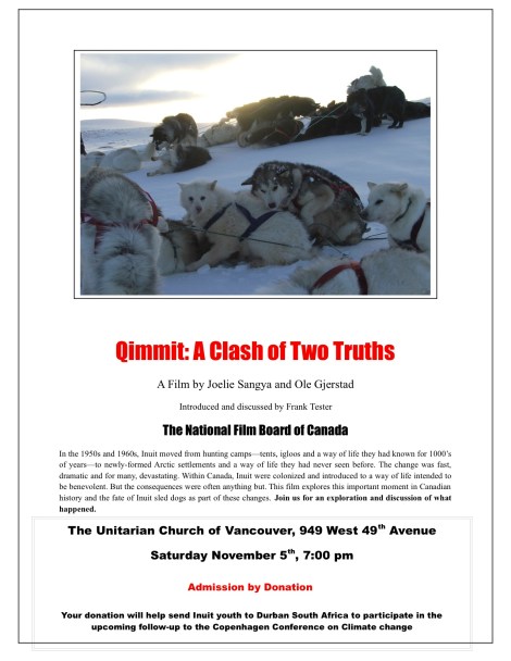 Film Screening – Qimmit: A Clash of Two Truths October 10, 2011 · by S-L · in Uncategorized. · Share this:TweetMore Email a link to a friend (Opens in new window) Email Like Loading...